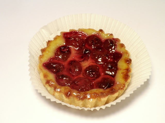 Песочная корзинка со сливочной заливкой и свежей вишней 120 г.